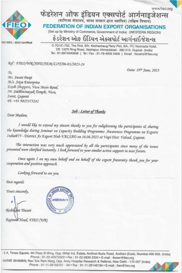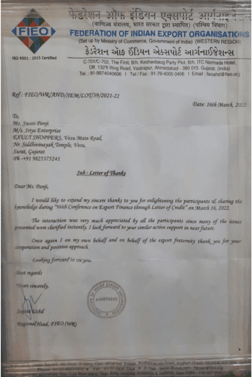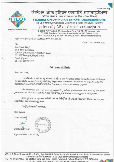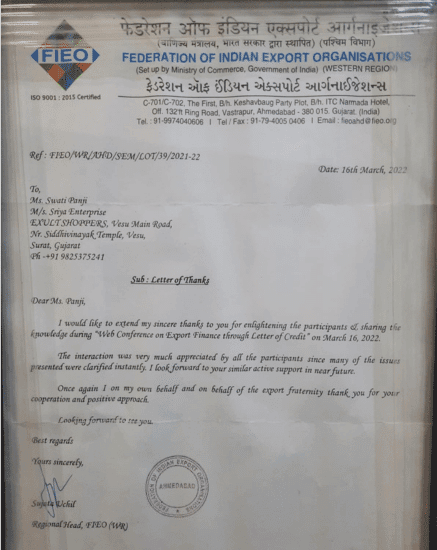 By combining advisory insights, practical training, and expert collaborations, Sriya Enterprises stands out as a boutique firm dedicated to elevating international trade success for Indian businesses. Our ongoing commitment is to help clients transform regulatory challenges into growth opportunities and thrive in an increasingly interconnected global marketplace.